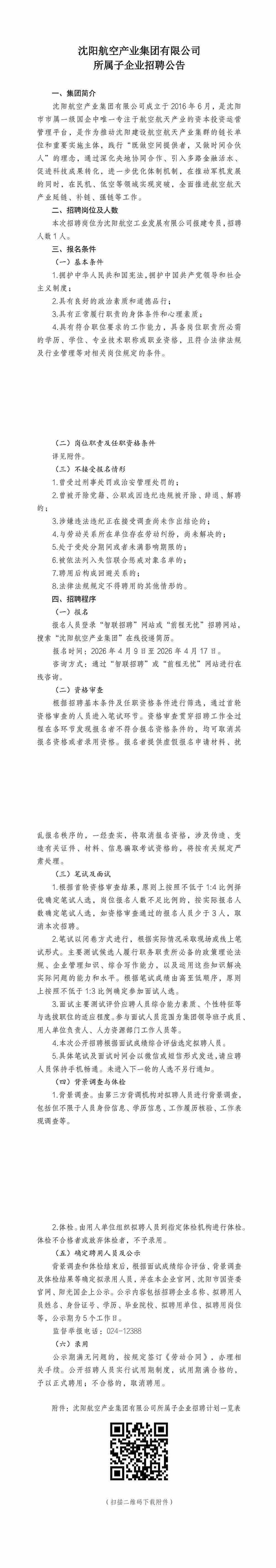 沈陽(yáng)航空產(chǎn)業(yè)集團(tuán)有限公司所屬子企業(yè)招聘公告